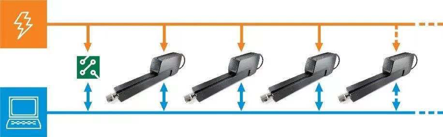 電動推桿內(nèi)部內(nèi)集成了電子器件,包括限位開關(guān)、位置反饋、同步功能以及總線